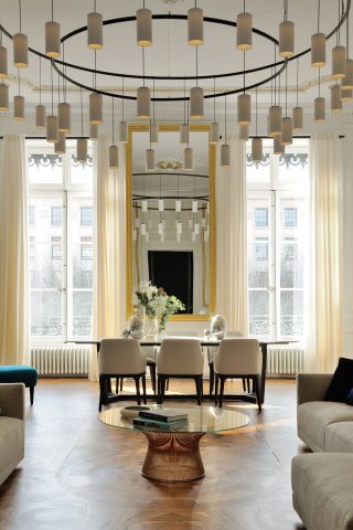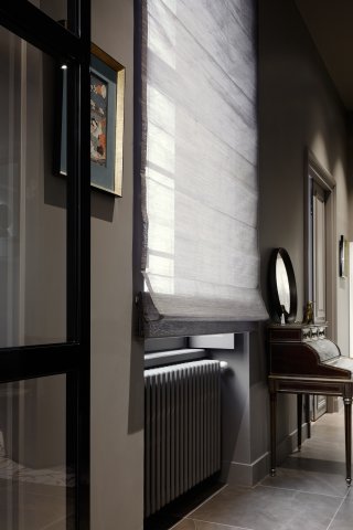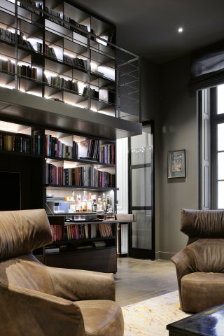 La dimension contemporaine s’exprime par la maîtrise des perspectives, chaque pièce créant ses propres points de vue, mais également par le prisme des matériaux innovants, céramique, acier, Corian®, parfaitement adaptés à un contexte ancien, de l’agencement et d’une décoration cousue main ; l’ensemble relié par des portes pivots sur-mesure, alliant le verre et l’acier, à même de créer une rythmique et de fusionner les mondes d’hier et d’aujourd’hui.