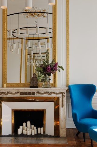 L’Atelier Giffon a opté pour le mariage de l’ancien et du contemporain, offrant un confort actuel tout en préservant les éléments patrimoniaux restaurés et au besoin réintégrés, à l’instar du parquet cintré avec rosaces, composées de douze essences de bois différentes, et des boiseries (moulures, stylobates, portes cintrées…).